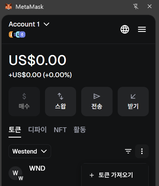 메타마스크로 돌아가 토큰 가져오기를 통해 주소를 불러오면 나의 토큰의 메타마스크에 등록된다.