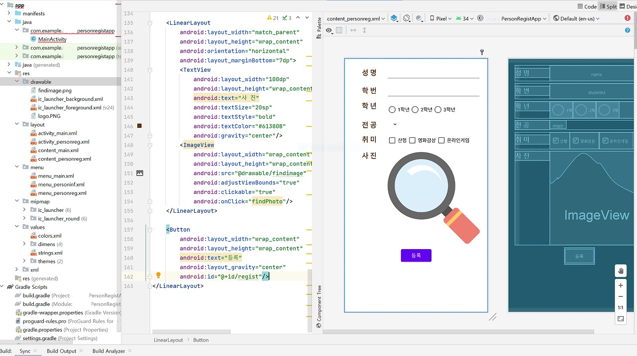 content_personreg 열어서 이미지뷰는 삭제한다.